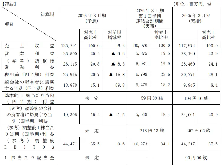 - 2025年3月期(実績)及び2026年3月期1四半期累計期間(実績)の1株当たり当期(四半期)利益は、期中平均発行済株式数により算出しております。