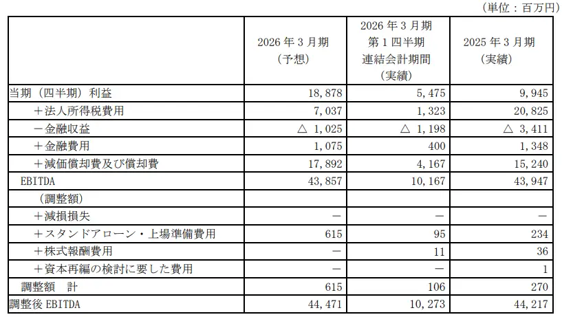 - 調整後営業利益、調整後EBITDA及び調整後当期(四半期)利益につきましては、国際会計基準により規定された指標ではなく、当社の業績を評価する上で、通常の営業活動の結果として投資家が有用と考える財務指標であり、上場準備のために発生するスタンドアローン・上場準備費用等の非経常的なものについて除外しております。